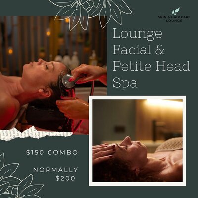 Enjoy the relaxing combination of our customized 60-minute Lounge Facial and Petite Head Spa treatment.